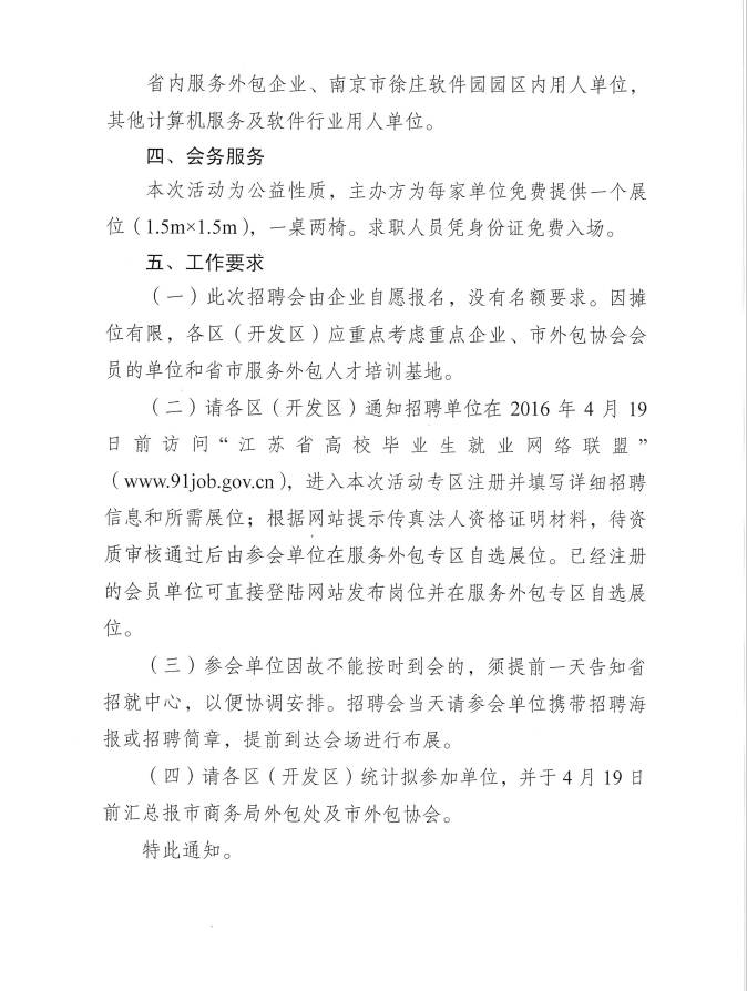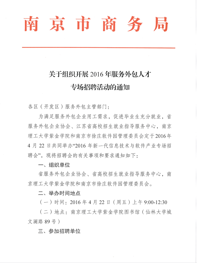 關(guān)于組織開(kāi)展2016年服務(wù)外包人才專(zhuān)場(chǎng)招聘活動(dòng)的通知