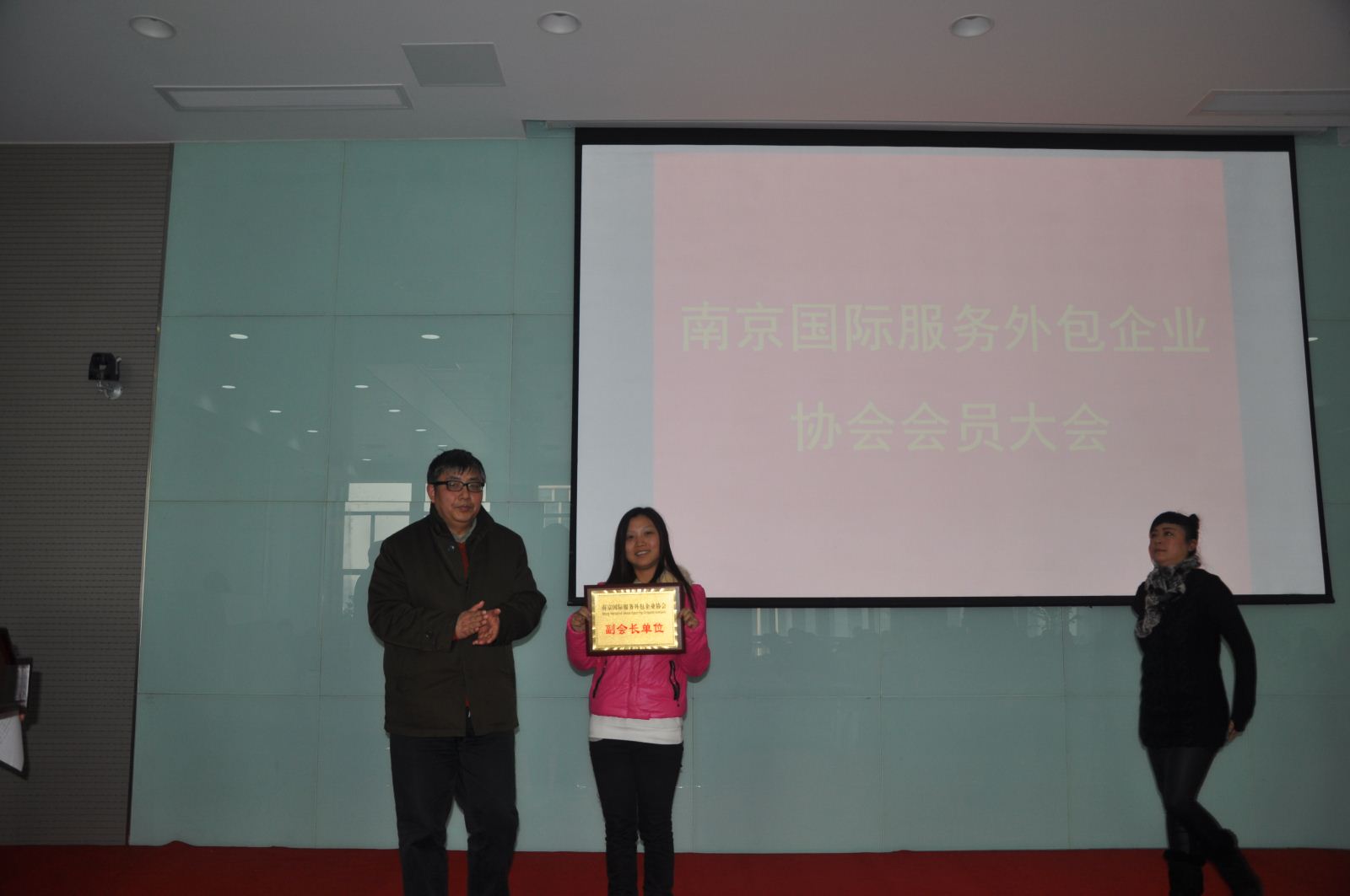 上半場(chǎng),南京國(guó)際服務(wù)外包企業(yè)協(xié)會(huì)秘書長(zhǎng)陸薇拉女士,向各會(huì)員單位匯報(bào)了協(xié)會(huì)2014年度的主要工作,并得到了各會(huì)員單位對(duì)協(xié)會(huì)工作的肯定。匯報(bào)結(jié)束后,由南京嘉環(huán)科技有限公司、江蘇萬和計(jì)算機(jī)培訓(xùn)中心、南京愛德印刷有限公司、江蘇謀士在仁人才管理咨詢股份有限公司等5家企業(yè)參加了“‘百企巡展’系列活動(dòng)三”的推介活動(dòng)。推介結(jié)束后,南京市優(yōu)壹職業(yè)培訓(xùn)學(xué)校、南京錦創(chuàng)科技股份有限公司、南京軟通動(dòng)力信息技術(shù)服務(wù)有限公司、南京貝龍通信科技有限公司、江蘇謀士在仁人才管理咨詢股份有限公司、南京瑞科翻譯有限公司、南京皓都信息科技有限公司等7家企業(yè)參加了授牌儀式。